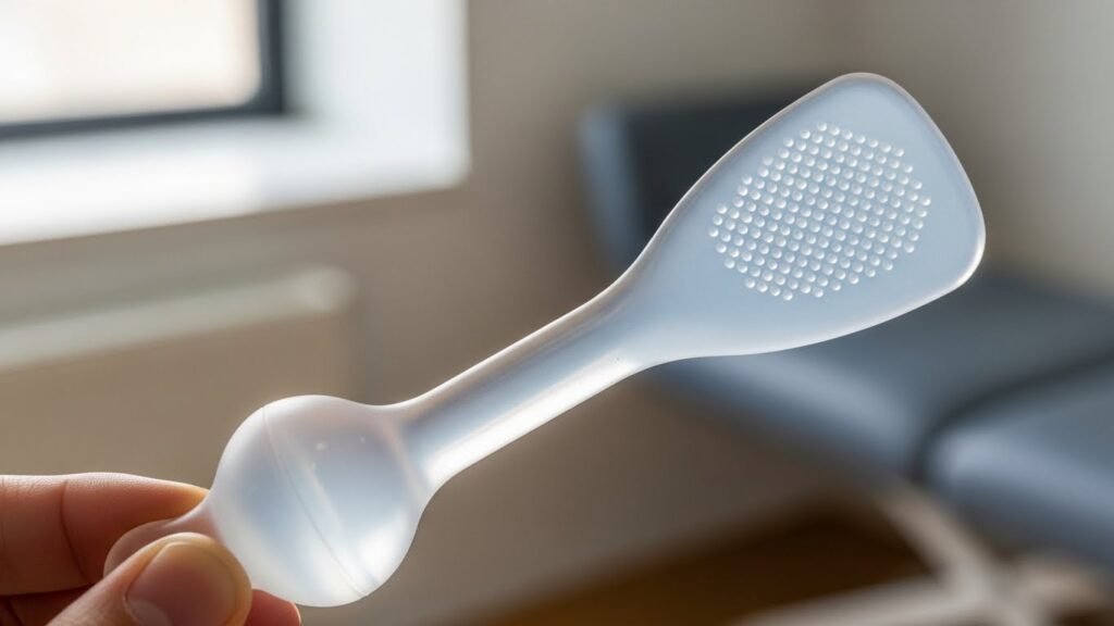 - 舌圧トレーニング器具:舌を吸盤のように吸い付けて保持するタイプで、舌の位置を意識づけるのに役立ちます。
