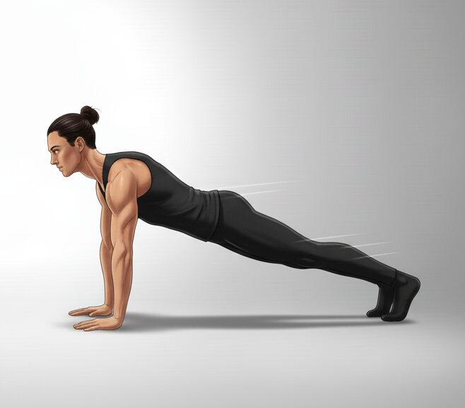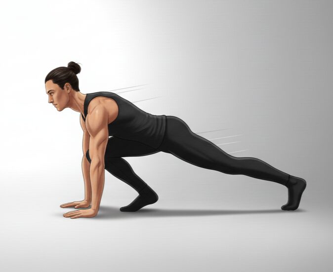 3. 両足を後ろに伸ばして腕立て伏せの姿勢になる。