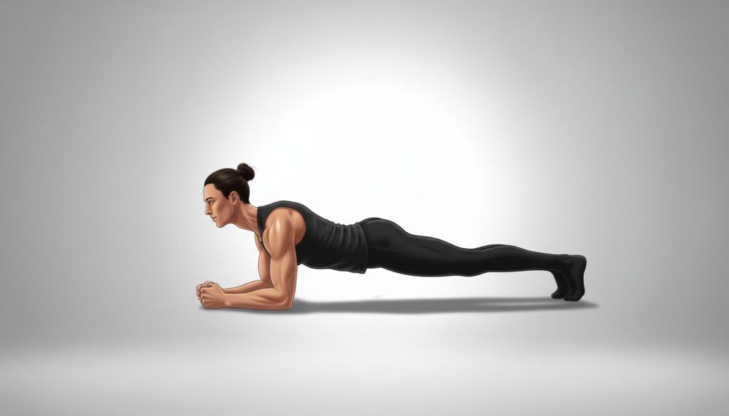 2. 頭からかかとまで一直線になるように意識し、お腹に力を入れてキープ。