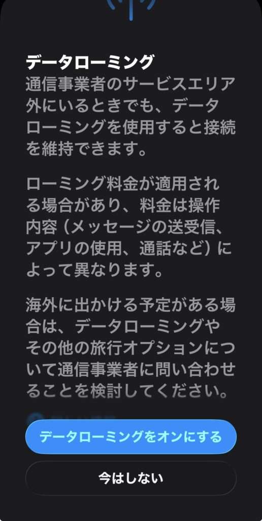 複雑な設定も不要で、現地に着いたら「データローミング」をオンにするだけ。この手軽さは確かに圧倒的です。