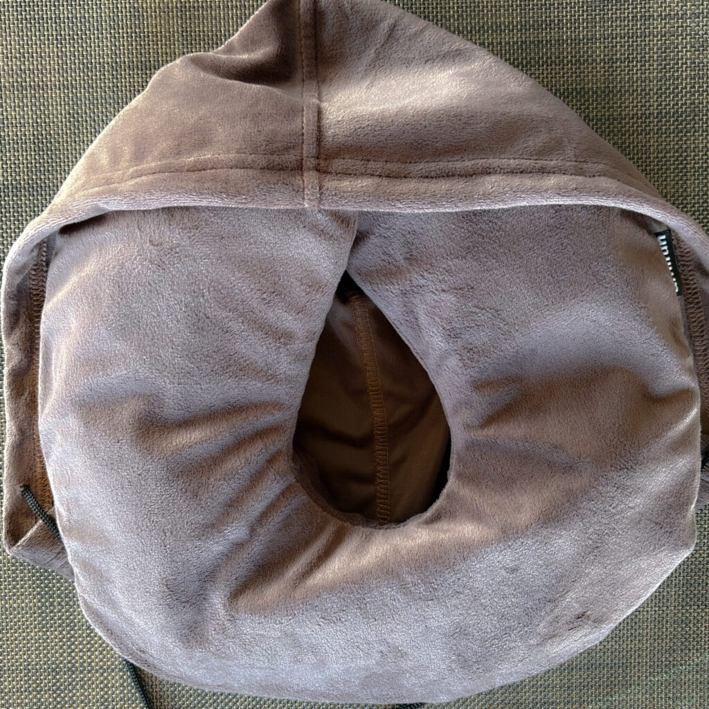 シニア世代には「ネックピロー」より「腰まくら」として使うのがおススメ。座面の角度が合わない海外の飛行機でも、これ一つで姿勢が安定し、到着時の腰の軽さが劇的に変わります。空気の量を調節できるので体勢に合わせられます。