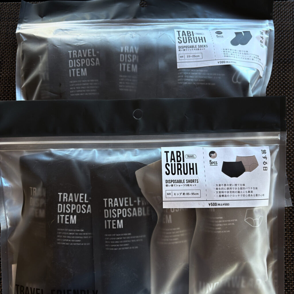 「洗濯の手間」を省けるのが最大のメリット。帰国時には下着分のスペースが空くので、お土産をたっぷり詰め込めます。100均、3COINS、ネットショップなどで購入できます。