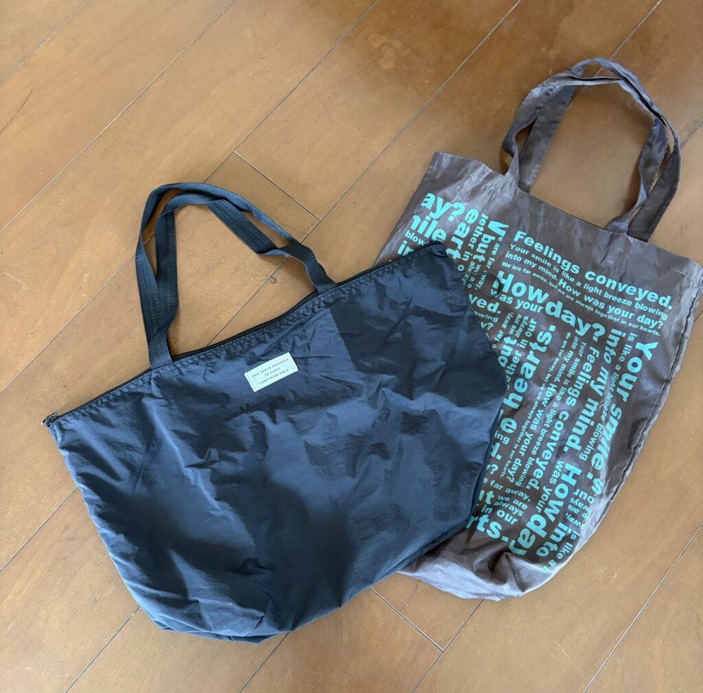 100円ショップのバッグはお土産などたくさん入りますが、スリコで500円くらいで買えるチャック付きのバッグは、1日観光などで荷物がかさばるときに重宝します。軽いし、上着なども丸めて入るサイズです。