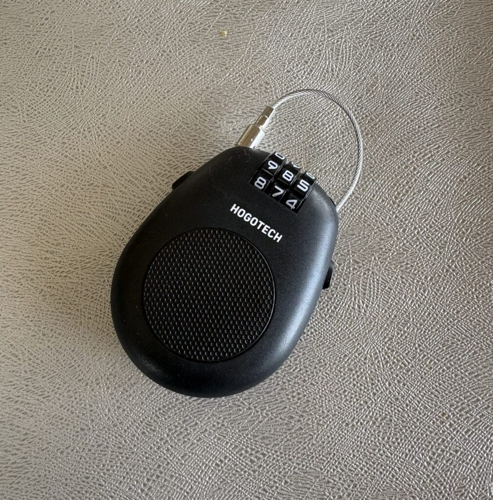 防犯用のワイヤーロック。スーツケースや手荷物の一時置きに利用します。