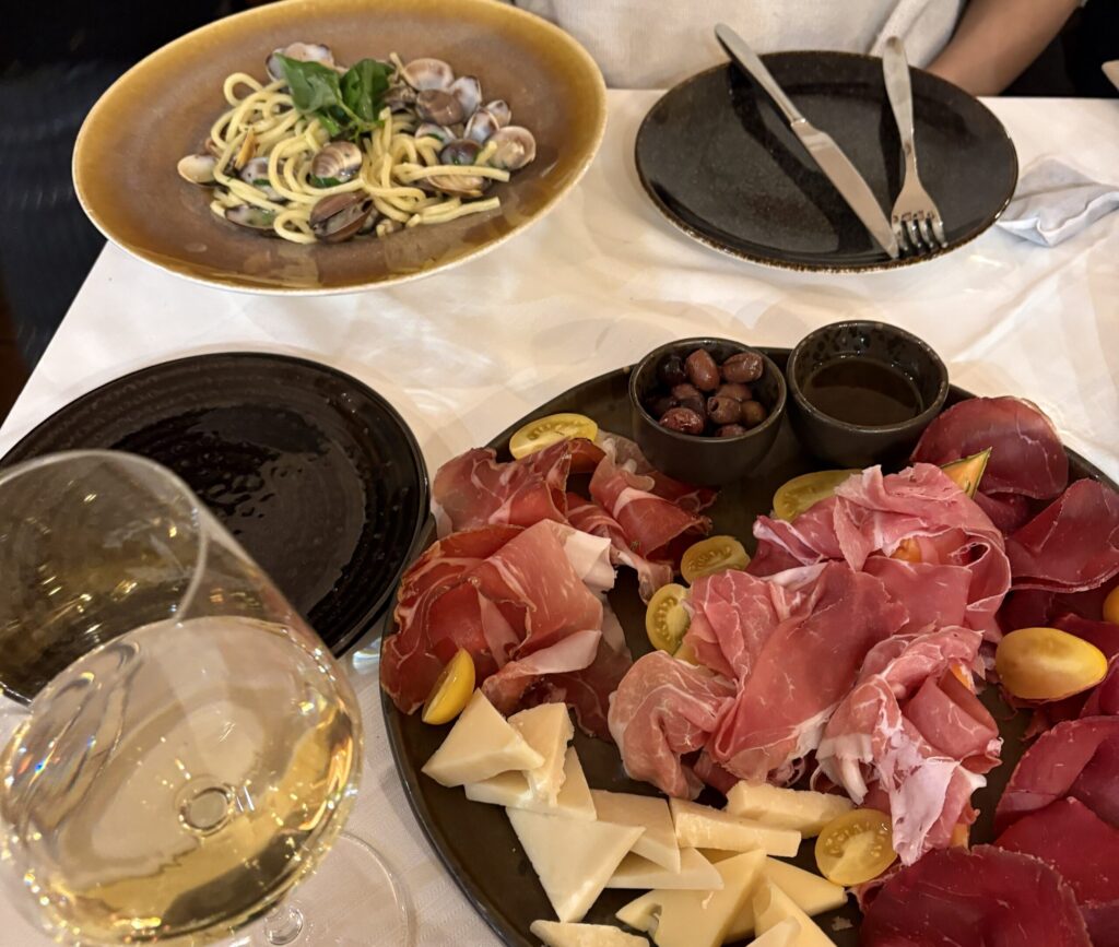 イタリアの夕食は遅めです。レストランが開くのは19:00頃、地元の人が集まりだすのは20:00を過ぎてからです。早めに行けば予約なしでも入れることがありますが、20時台を狙うなら予約は必須です。